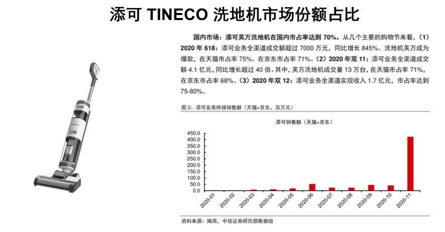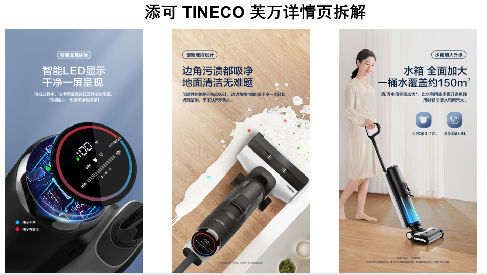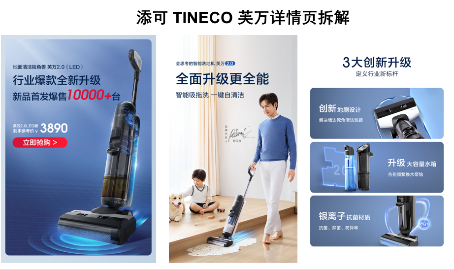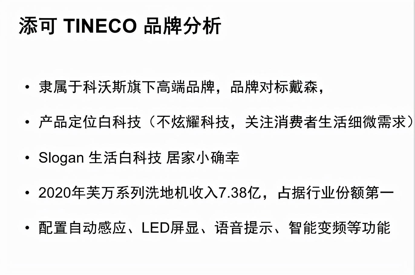有了行业的认识,我们肯定会了解到一些绕不过去的品牌,也就是行业龙头,拆解头部品牌也是为了学习能够为我所用的方法,其次是为了知彼知己有效切入市场。这里我们能看到就是添可,作为上市公司科沃斯旗下品牌,信息梳理方便一些。以添可为例作为分析。