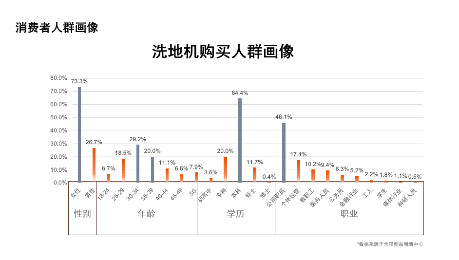 这部分数据一般在电商平台会有,这部分数据来源已经标注(高学历、30岁以上女性用户是主力群体)